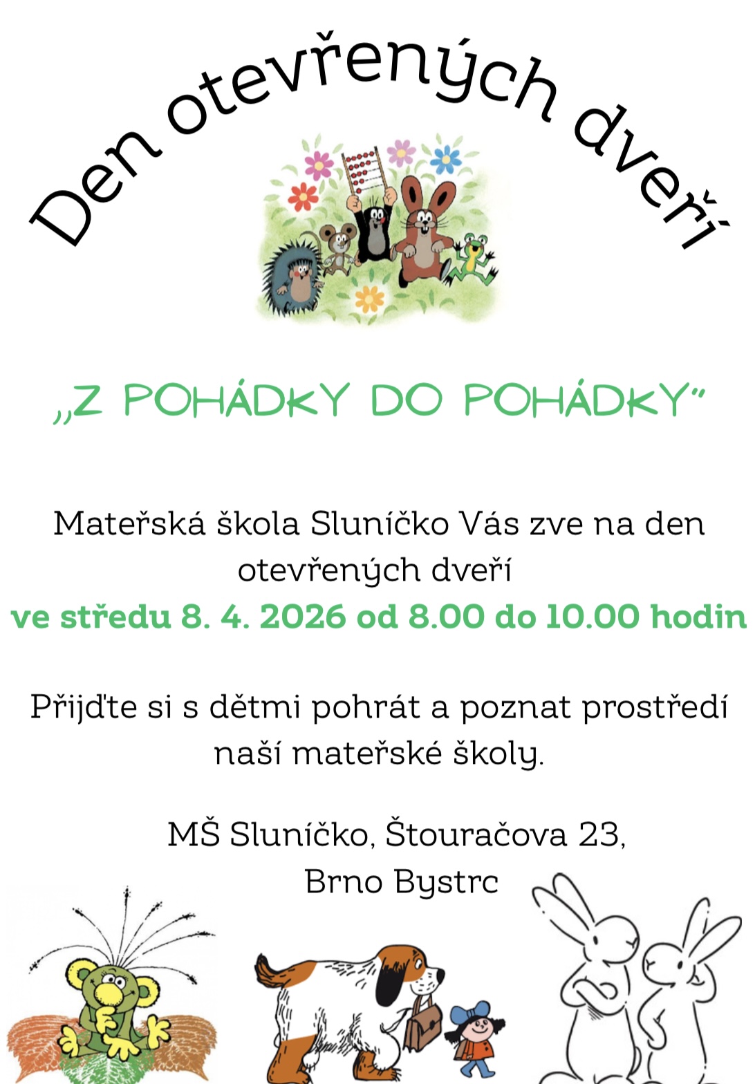 Přijďte každé úterý od 10.00hopd. do 11.30 hod. navštívit naši Mateřskou školu SLUNÍČKO, Štouračova 23.
